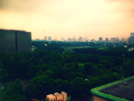 ちなみにこの日は天気が途中で悪化して雨が降ったのですが、一応日比谷公園が見渡せるので大雨後の公園を一枚。(ミニチュア風に加工したものの・・・微妙でした・・・)