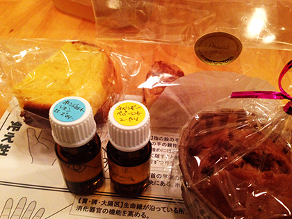そんなわけで、用意してもらったアロマオイルでマッサージオイルを作り、用意してもらった効能別マッサージのつぼ押し表をみながら押し方を学び、用意してもらった様々なハーブティーを用意してもらった手作りお菓子とともに堪能する数時間でございました。