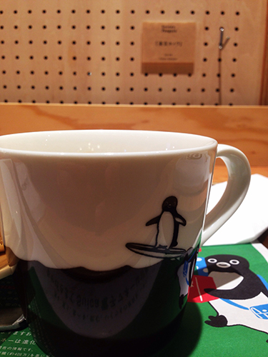 パフェを食べた後にそれはいかん!!と思い、普通の軽食を頼みましたが飲み物はぺんぎんのマグカップに入ってやってまいりまして。