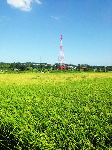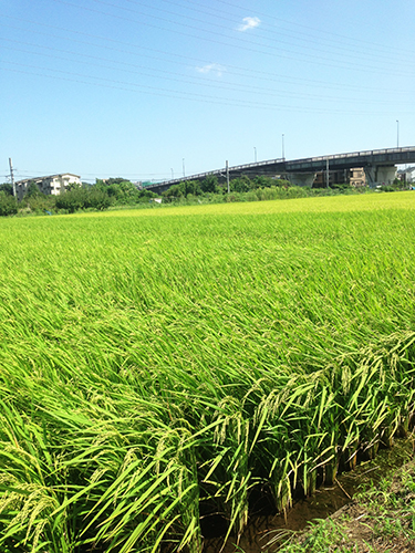 この辺りは民家やマンションの前の駐車場になりそうな余った土地が稲田になっていたりして、なんだか贅沢な土地の使い方ですなあ。