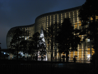 間近で見るとただのガラス張りなんですけど、こうして少し離れると確かに曲線美な建物っぽいような・・・。