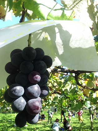 (ブドウを狩る用に渡されるバケツとはさみの清潔さは・・・気にしてはだめだだめだだめだ)