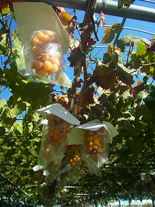 珍しい品種のぶどうのようで、完全に狩用でなく出荷用と思われるぶどう達。