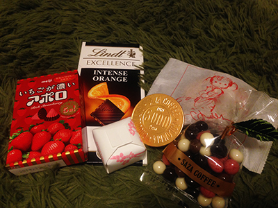 職場にて1ヶ月前に賄賂的に配り歩いたチョコレートと先週末に行った海の土産菓子を今週賄賂的に配っておりましたらなんだかどうして今日1日でこんなに何倍返しになって返ってまいりました^^;