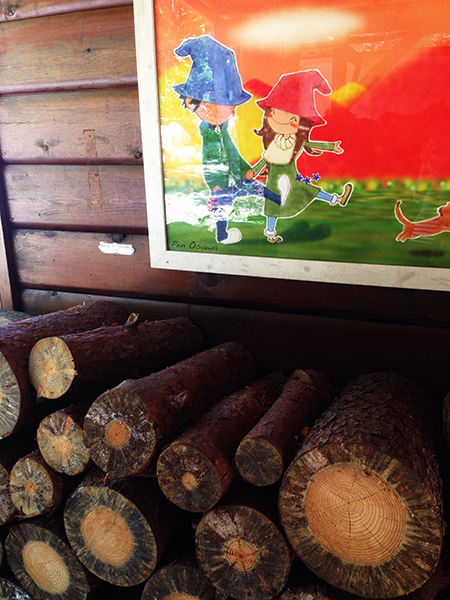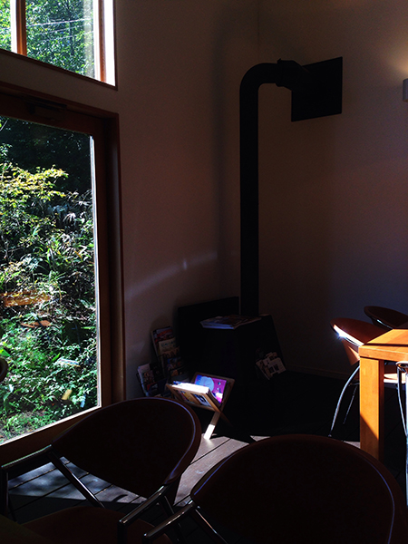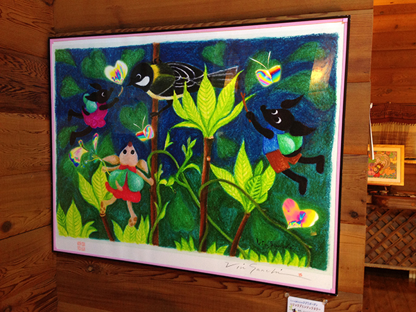 庭のほうに薪のギャラリーというものがあって、地元の学生などのアート作品を定期的に飾っているそうです。