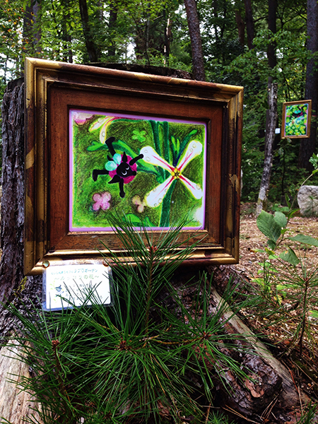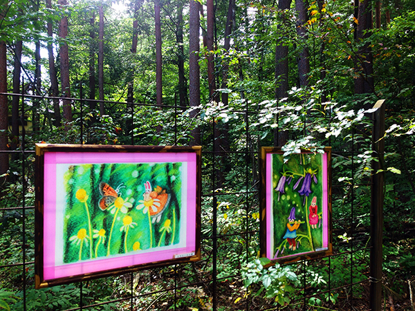 木や切り株に貼り付けてあるとか、壁に飾っている後ろに林があるとか個人的にはかなり興味そそられる展示でございます。