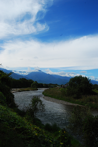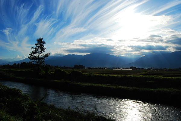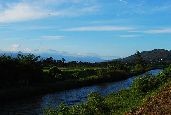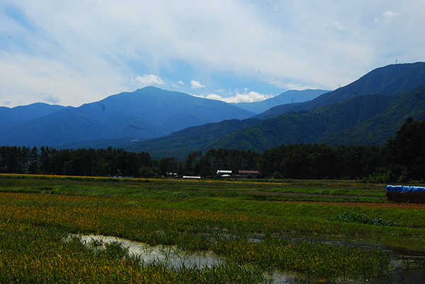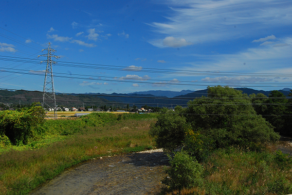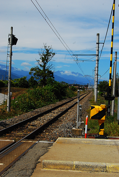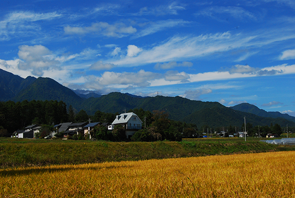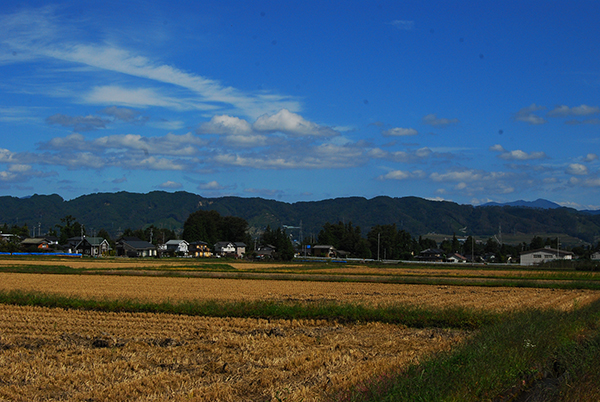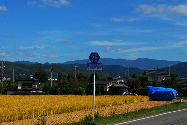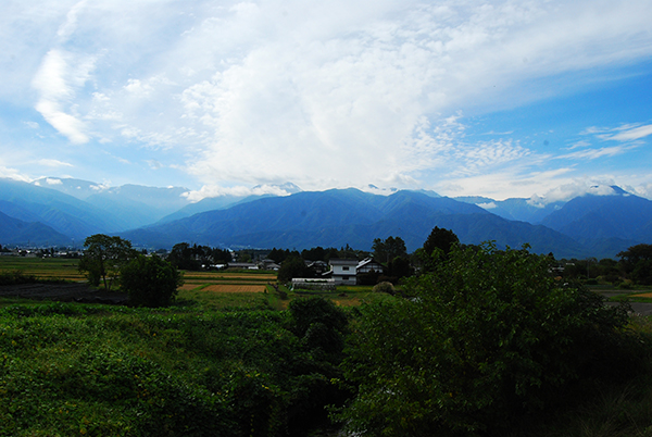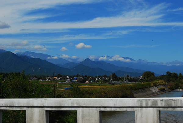 すでにお昼を回ってしまい、急いでこのカフェに行こうとひたすら国道と一般道を駅に向かって下るのですが、周りに広がる田園風景と後ろに見える北アルプスの山が素晴らしすぎて暴走撮影がとまりませぬ!!
