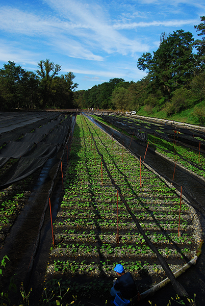 わさびを作っている人達を眺めながらの見学なんですねえ!