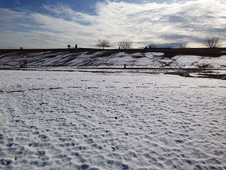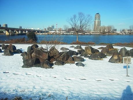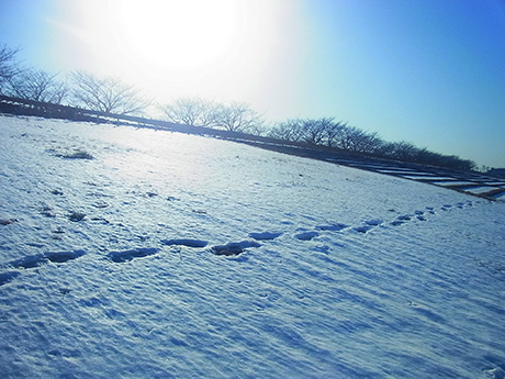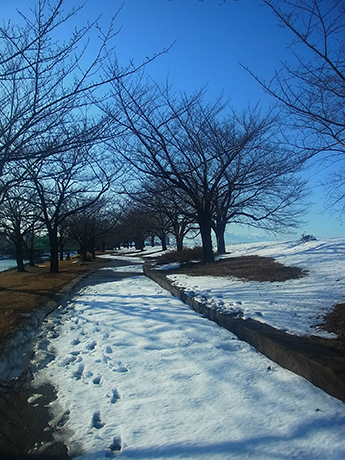 土手は広いので一面の雪景色という撮りがいがありますな。(個人的に)