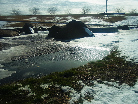 土手は想像通り新雪部分が多くて銀世界があちらこちらに!!