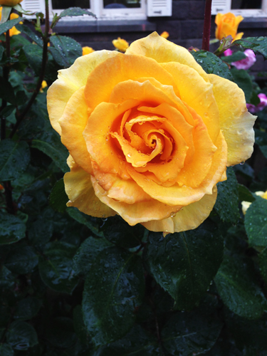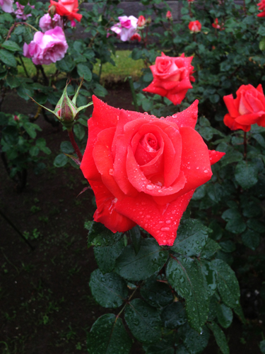 かなりの本降りだったので、どの薔薇も水がしたたっております;
