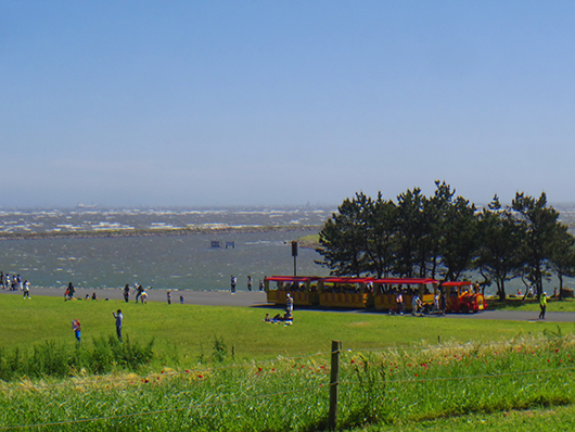 東京湾を眺めつつ公園内の芝生でのんびりするつもりがちょっとした修行となりました;