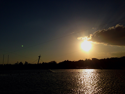夕方までのらりくらりと見物しつつ、最後にデッキ?のようなところに出たらなんとも天気のよかったことを物語るような夕焼けも見れまして。