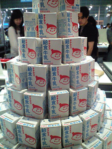 広告・商品宣伝ブースにて山積みされていて気になったチチヤス(の牛乳)パッケージ
