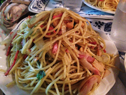 前回連れて行ってもらった時は半ば強制的にナポリタンを頼んだので(まずはそれを食べるべきらしい)今回はバジリコというパスタにいたしました。