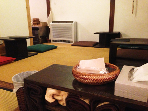 3人だったので、そのお店で一番大きいテーブル(4人席)に座ったのですが、これまた座敷なので周りに人がいないとなんとも落ち着きます。。