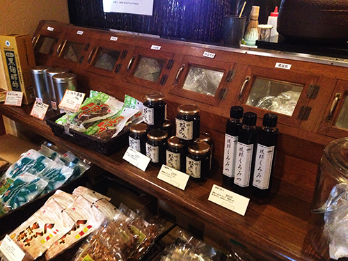 店内に沖縄の各島で育った黒糖の数々が置いてありました。
