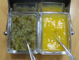 左はピクルス、右はマンゴー(ソース)