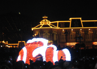 写真その3:リニューアルした(らしい)エレクトリカルパレードの新入り、ニモさん→たとえぼけていても分かりやすいニモさん。