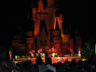 写真その4:パイレーツオブカリビアンのショー→もうこんな距離なんでジャックスパロウ(もどき)なんてどこにいるんだか分かりゃしないってね。でもクールでホット!