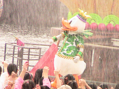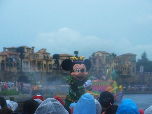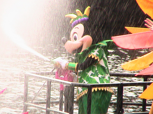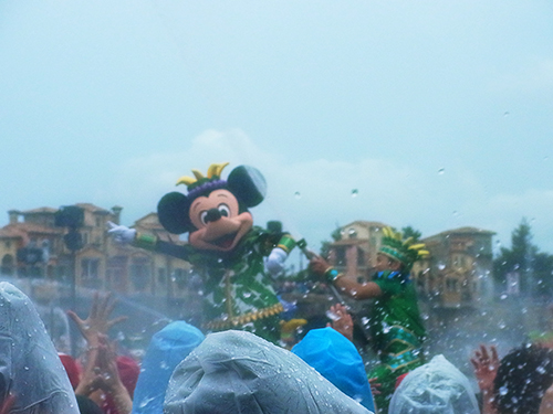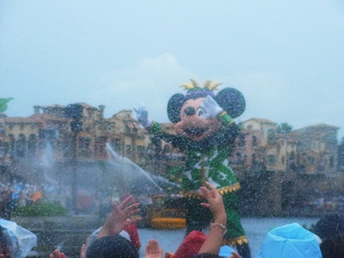 そういえばこんなに水を浴びて防水しなくて大丈夫・・・いや、夢の国のキャラに防水なんて不要!ということで(笑)