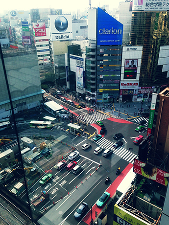オフィスエントランスのところが展望スペースのようになっていて、渋谷駅前を見渡せる雰囲気もなかなか。