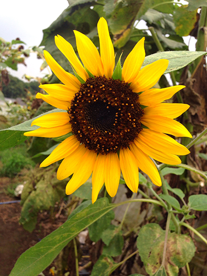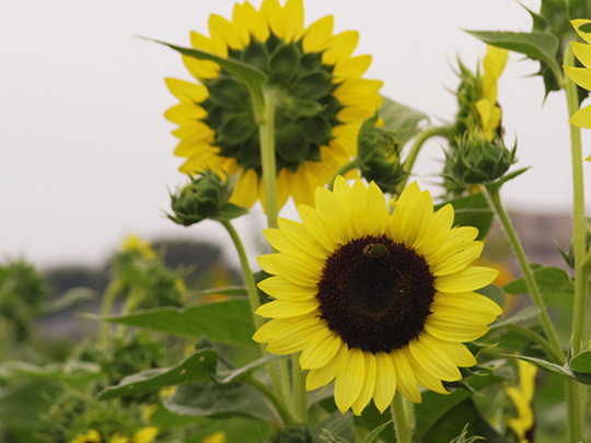 遠目から見るとちょっと元気なさげ(最盛期を過ぎた?)なひまわりも。。