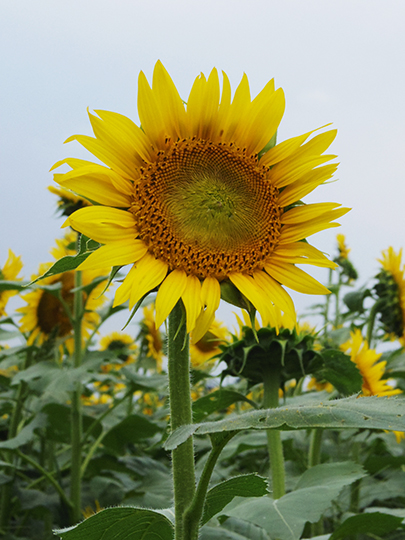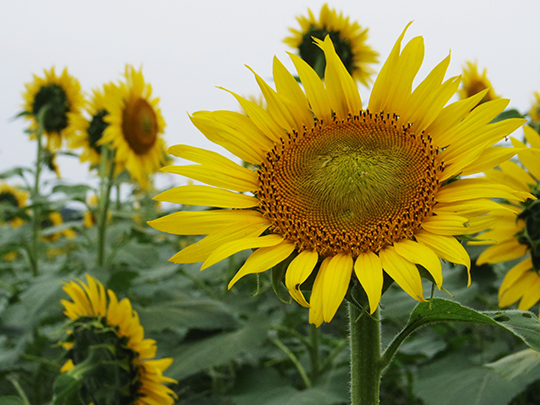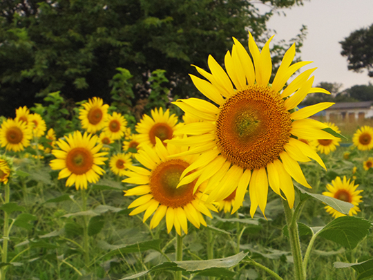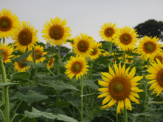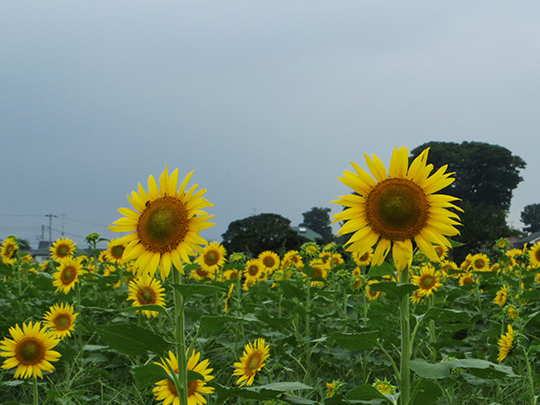 昨年に続き青空とは無縁のひまわり畑撮影となりました;