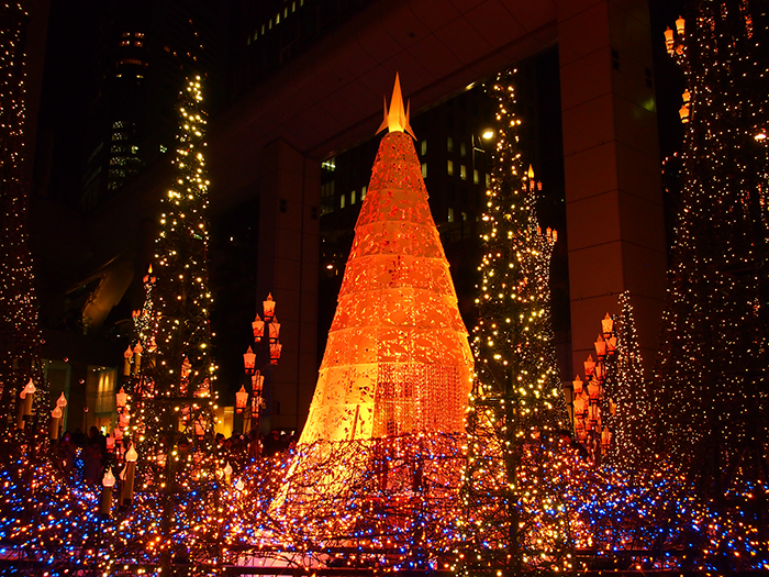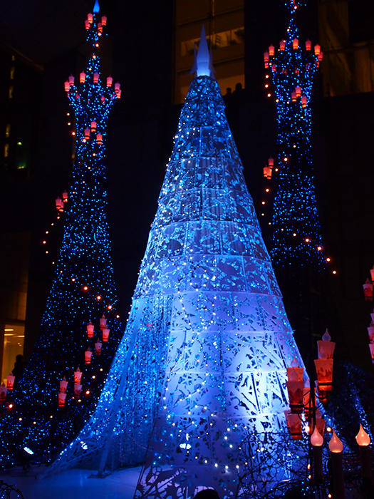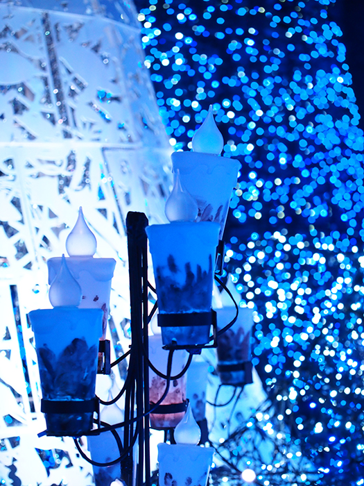 今まで三角錐だらけだったイルミネーションの建物が思いっきり美女と野獣感になっているではないですか。。