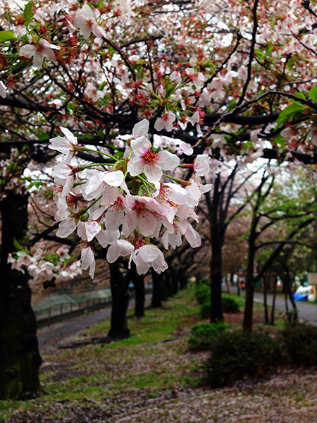 散り際の桜が川に積っているという目黒川のような光景は残念ながらありませんでしたが、桜の絨毯とやらはあちらこちらに。