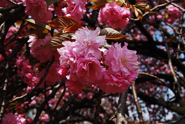 遅咲きはほぼ八重桜なので、どれもこれも花びらの数が多くて一斉に咲いている様子は本当に圧巻でございます。