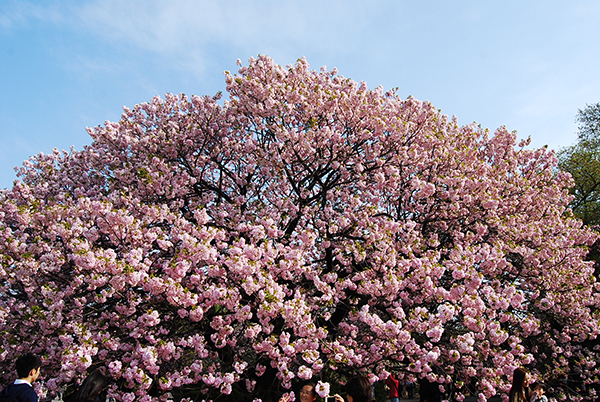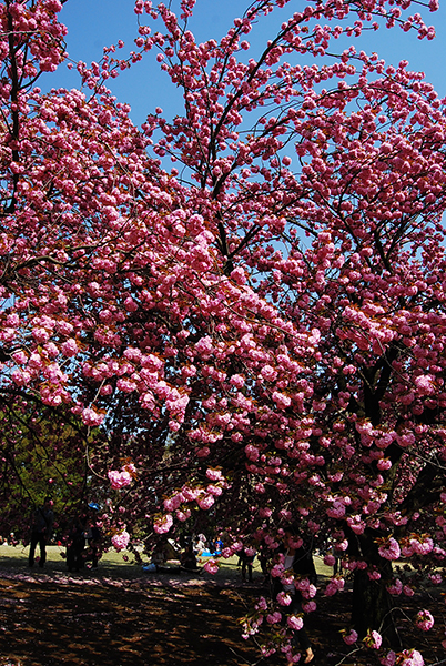 新宿御苑の八重桜で一番有名なのが”イチヨウ”という種類のようなのですが、もうこれが園内のそこかしこにもりもりと咲いておりまして。