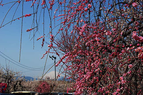場所は小田原からほど近い曽我梅林というところで、天気次第では富士山と梅が同時に見れる場所のようでして。