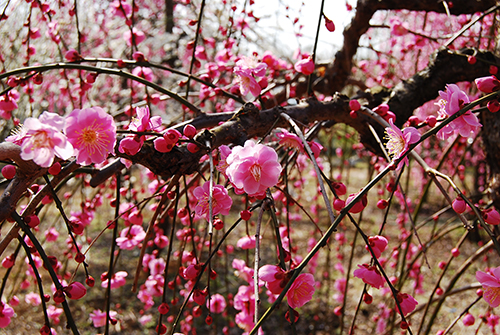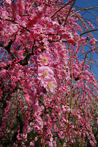 満開の枝垂れ梅の枝垂れっぷりがすごくて、その木の下からずっと見ていられる感じでございました。
