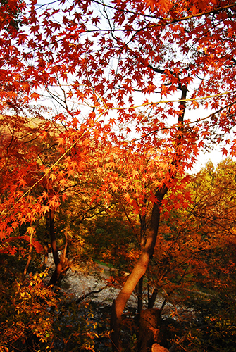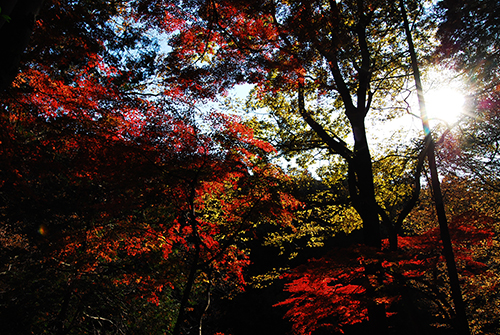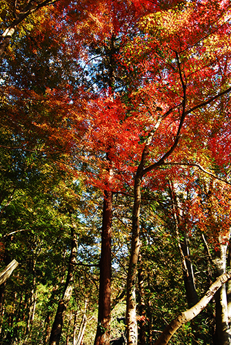 渓谷を再度上がって戻ると今度は嵐山渓谷敷地に作られた自然保護緑地?のようなものがあり、そこがまた紅葉(特にもみじ)がもりもりと連なっていて素晴らしい~