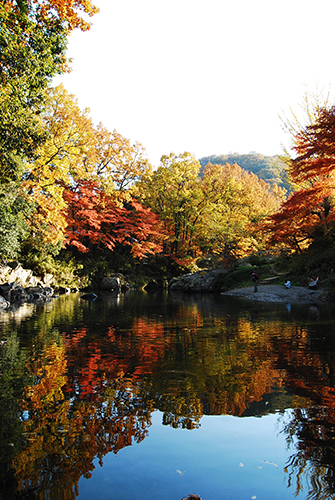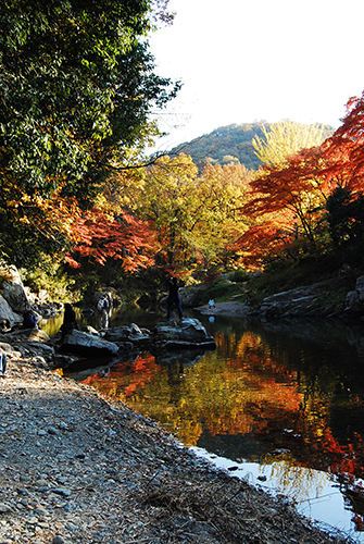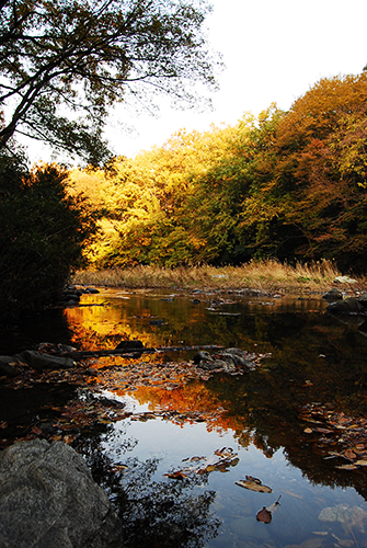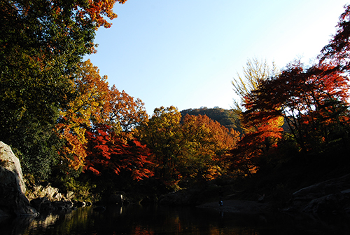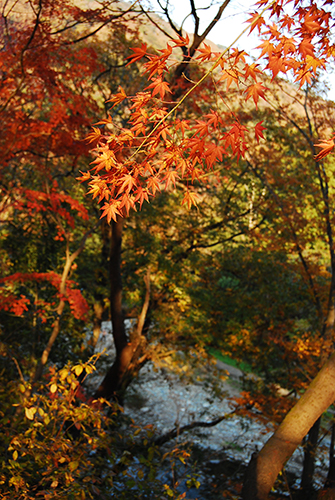 渓谷の水辺と紅葉はやはりいいもんです。。