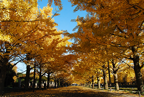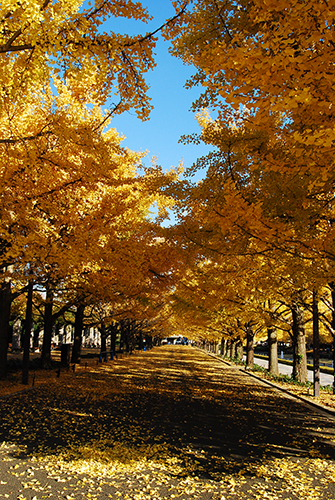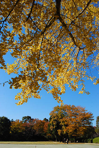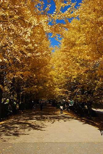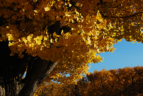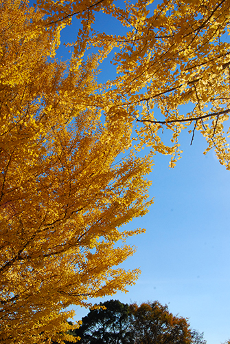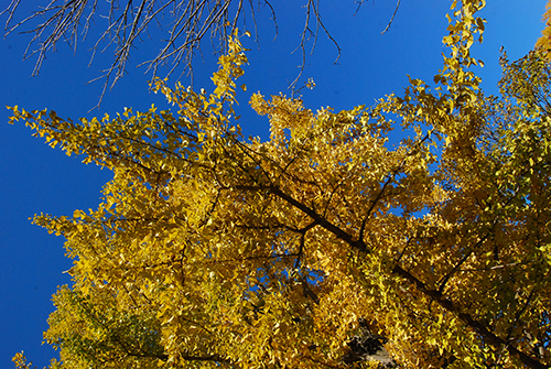 天気が良すぎて銀杏の色と空の色が逆に不気味に感じるほどのコントラストでございました。