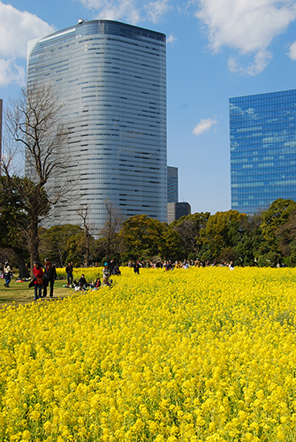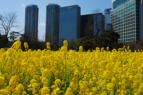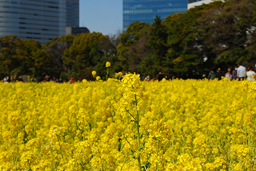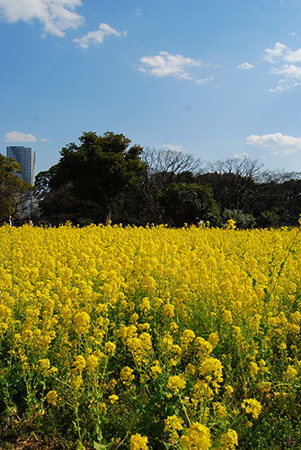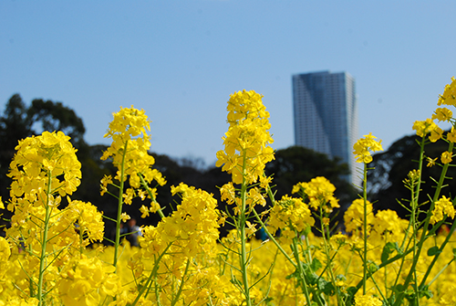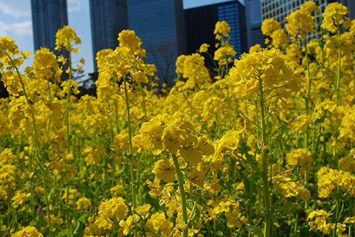 浜離宮庭園の菜の花畑は意外にも数が多く圧倒的でございました。
