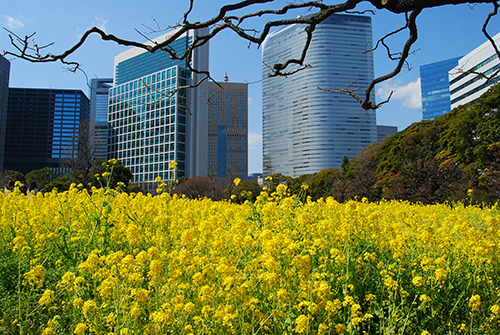 加えて菜の花畑みたいな場所も撮影できないだろうか・・と、ネットをあさっておりましたらなんと都心の庭園内に菜の花畑があるらしいとな!!!