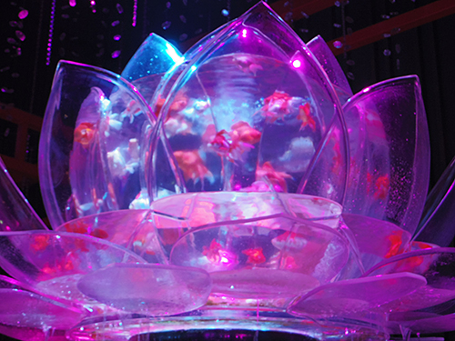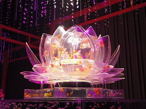 今までずっと金魚鉢だったメインのオブジェが今年は蓮の花に変わっておりました。