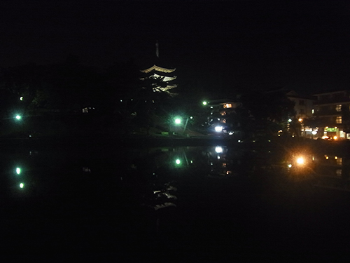 猿沢池から見る五重塔はライトアップイベントの時はもっと綺麗だったんでしょうなあ。。
