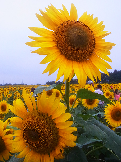 とまあ天気は残念な感じでしたが、ひまわり畑はこれでもかー!これでもかー!