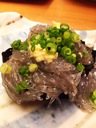 下の写真はジャンボ生しらす寿司ということで、大きさ的にはiPhoneより若干小さいぐらいでございました。出てきた時には想像以上のボリューミーさに驚きでしたがな!